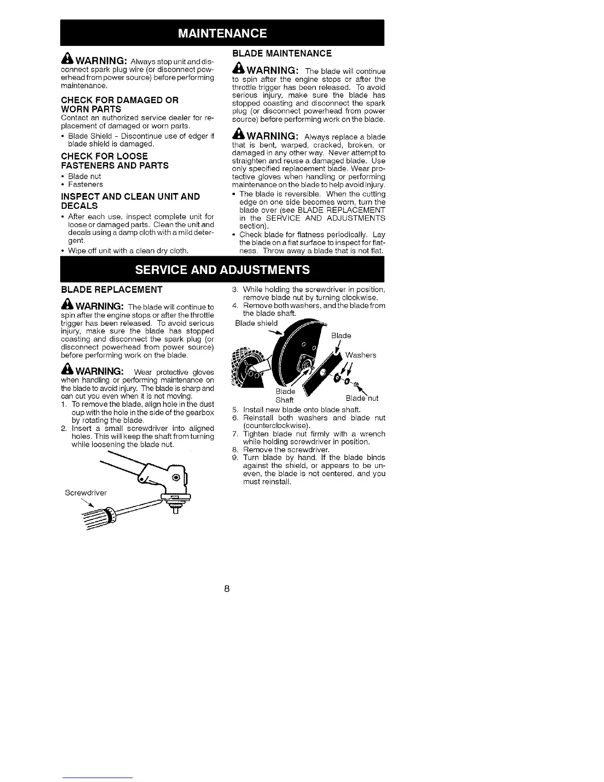 maintenance on the blade to help avoid h_jury.