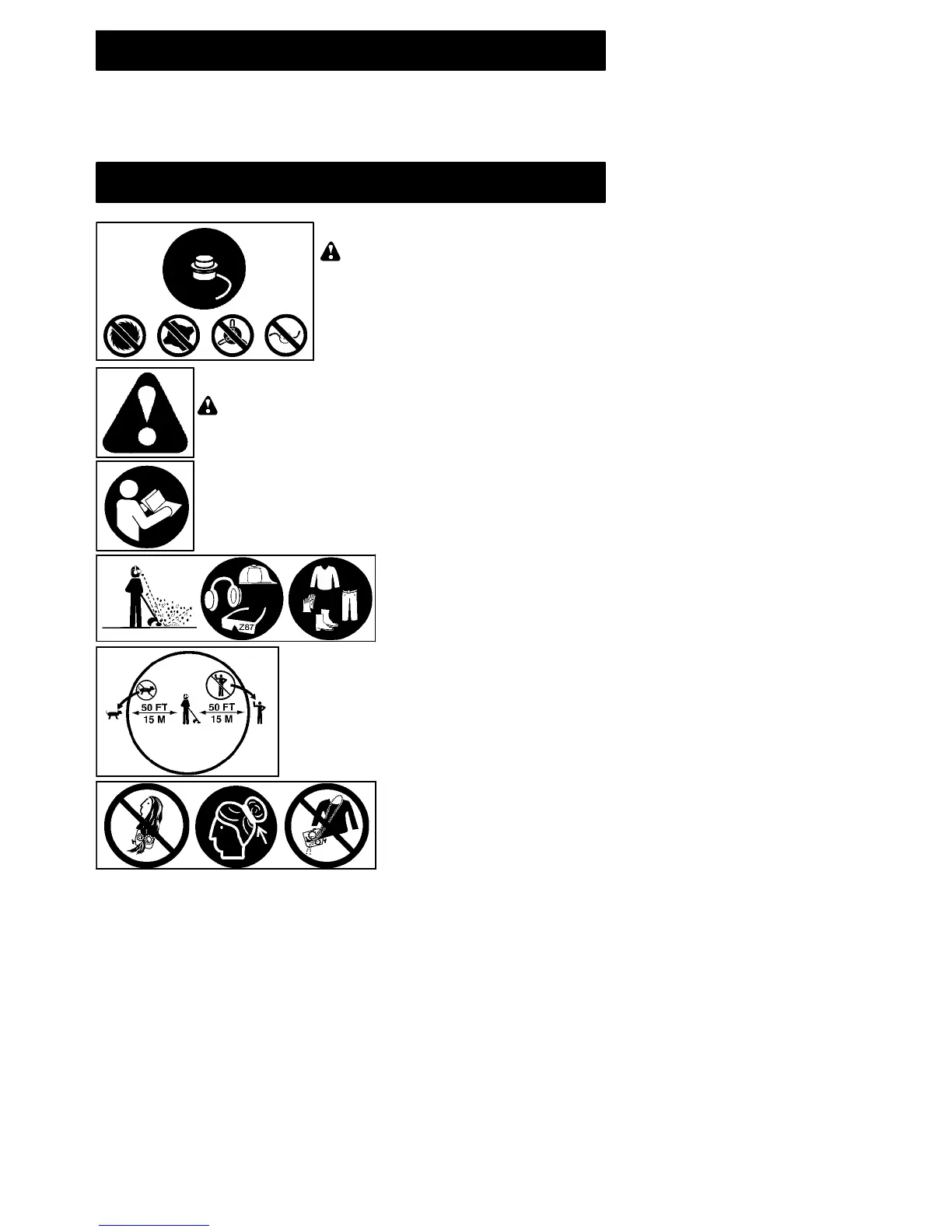S Keep children, bystanders, and animals 50 feet