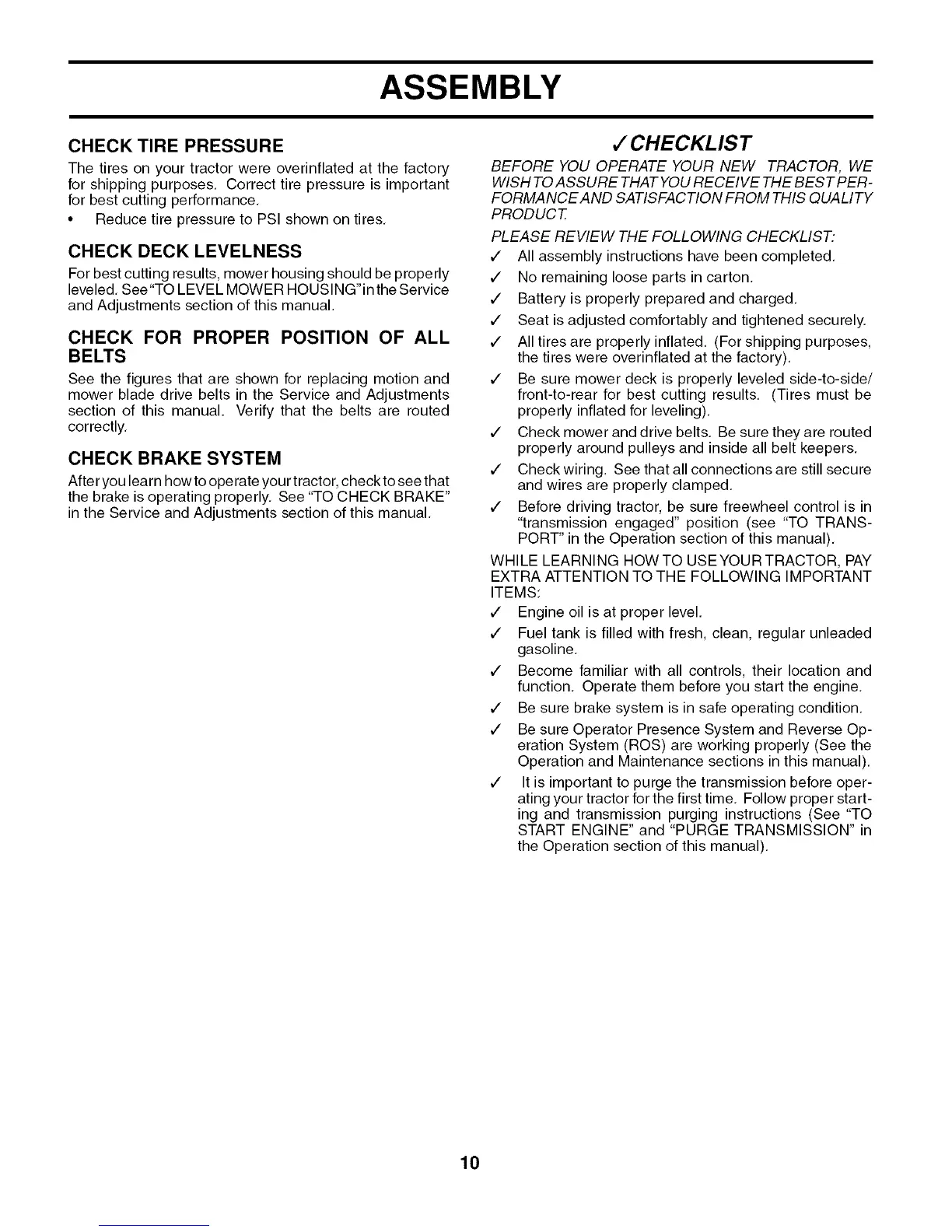 After you learn how to operate your tractor, check to see that