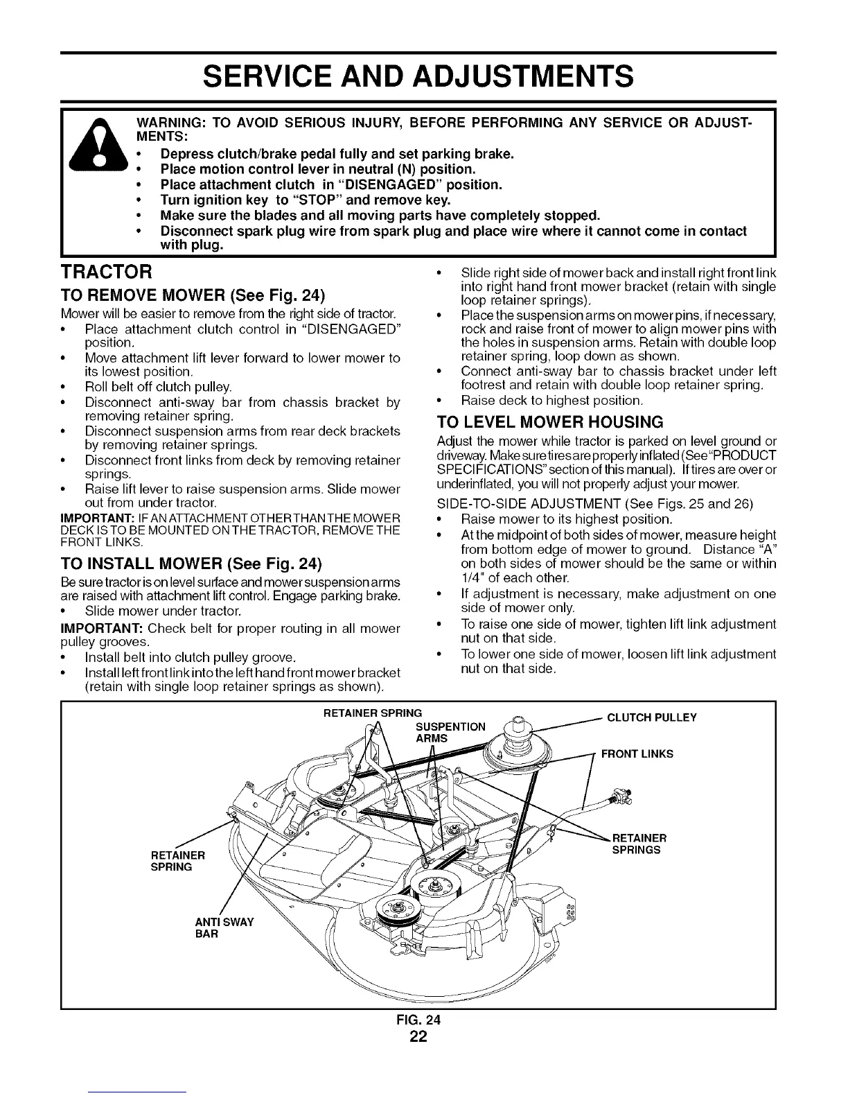 TO REMOVE MOWER (See Fig. 24)