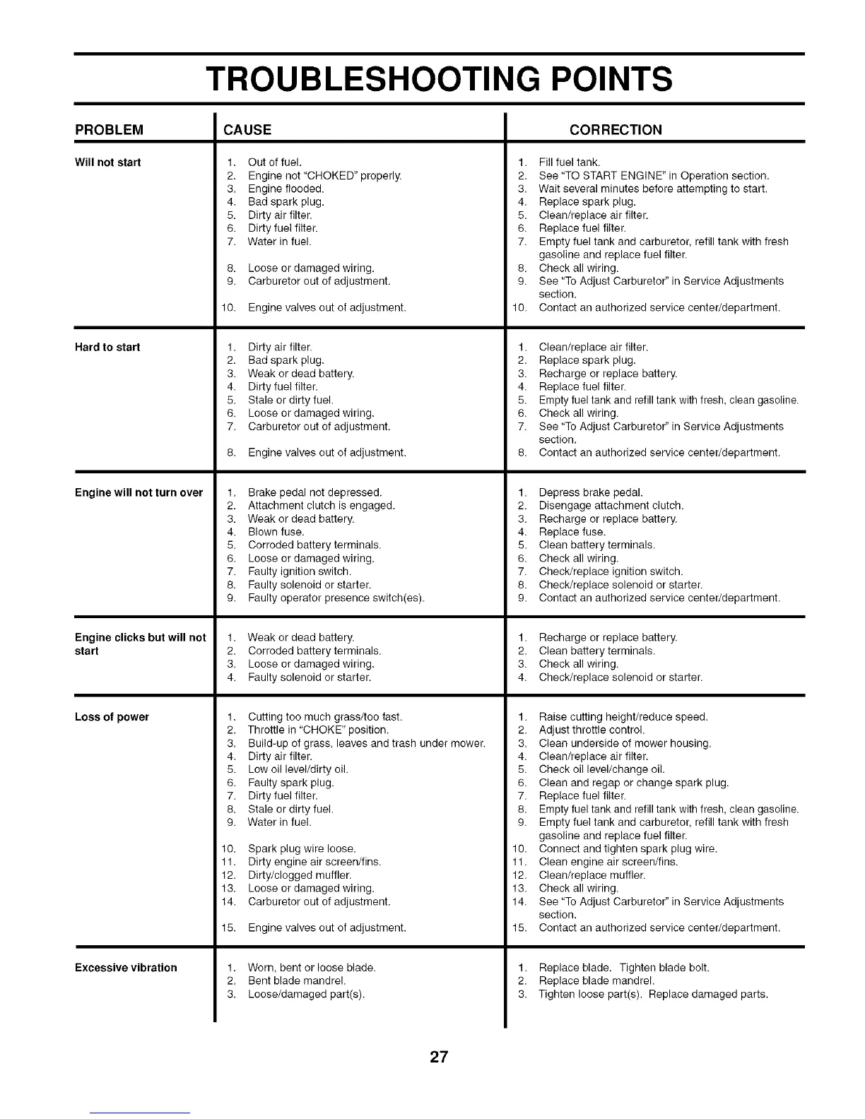 8. Check/replace solenoid or starter.
