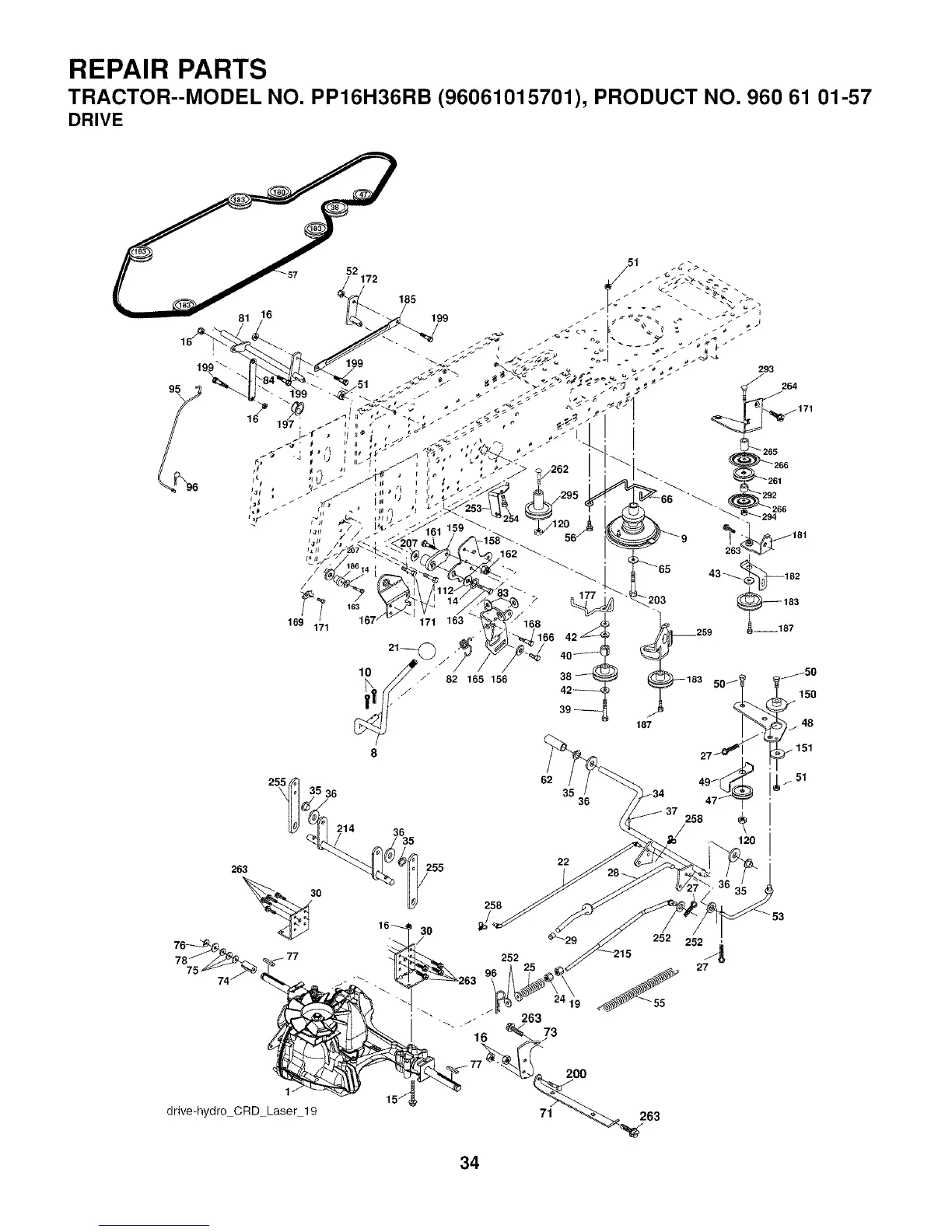 TRACTOR--MODEL NO. PP16H36RB (96061015701), PRODUCT NO. 960 61 01-57