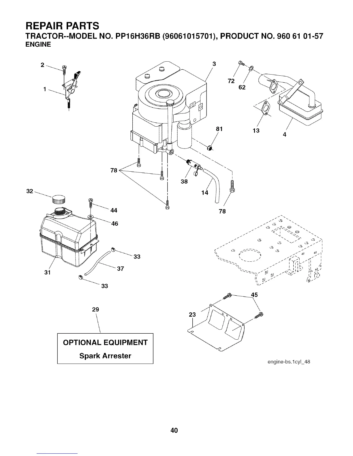 TRACTOR--MODEL NO. PP16H36RB (96061015701), PRODUCT NO. 960 61 01-57