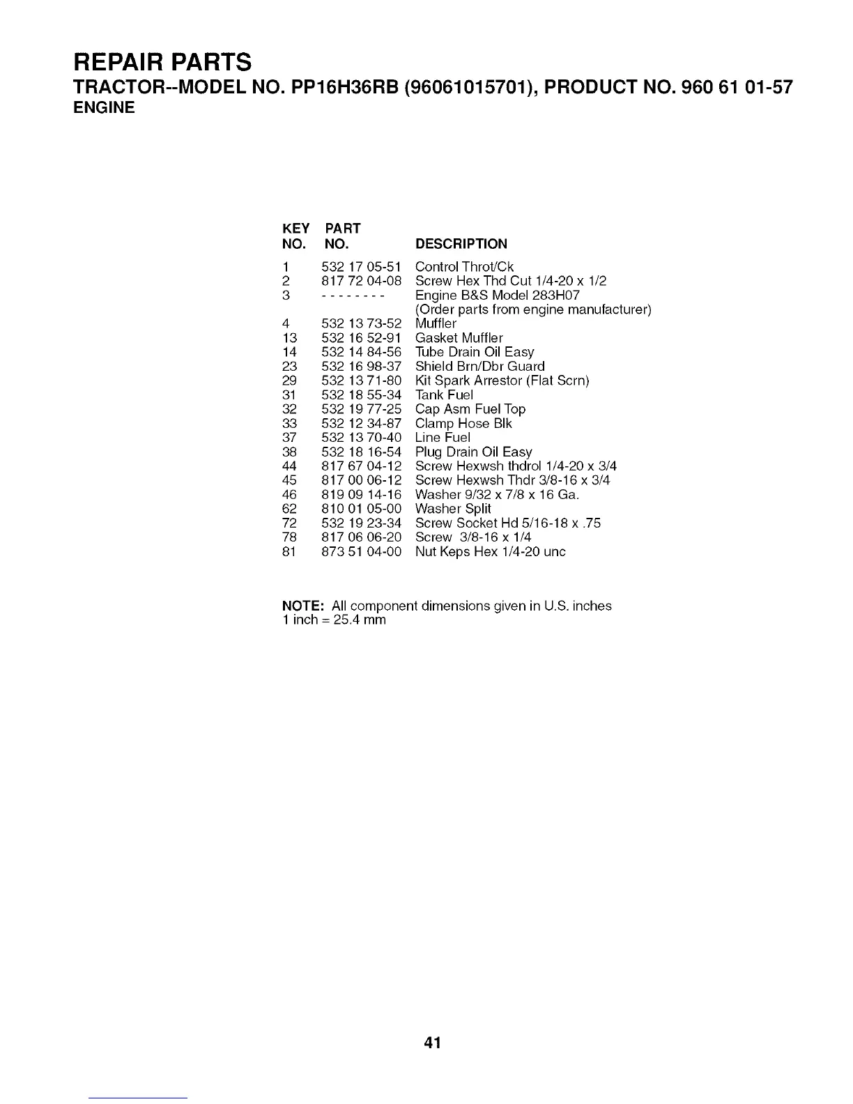 TRACTOR--MODEL NO. PP16H36RB (96061015701), PRODUCT NO. 960 61 01-57