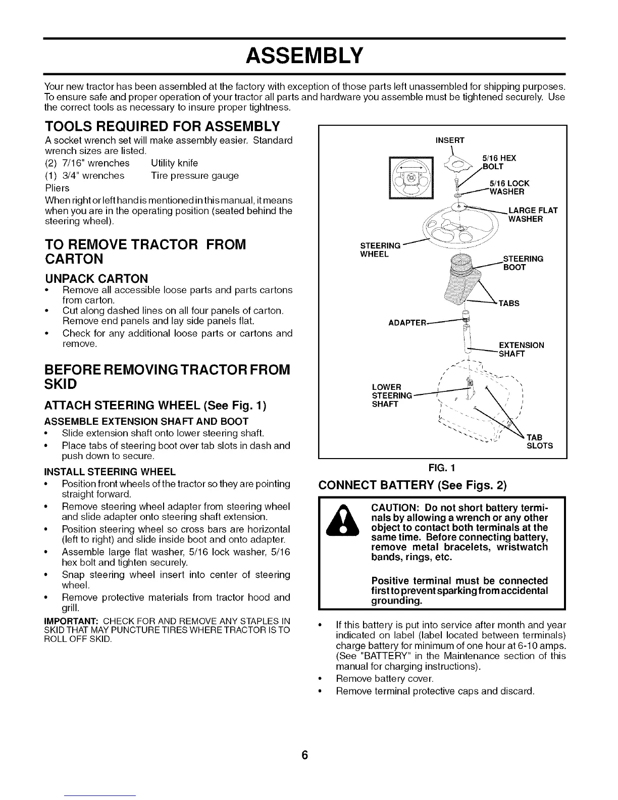 ATTACH STEERING WHEEL (See Fig. 1)