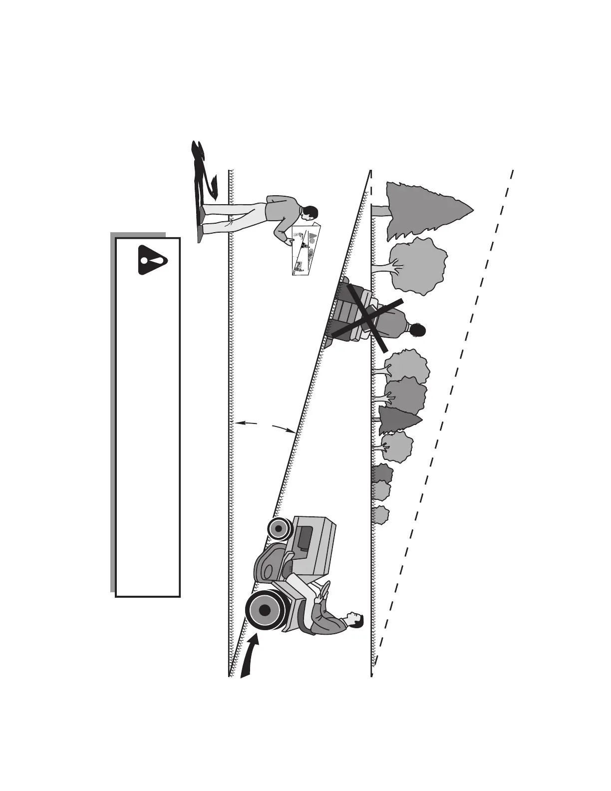 paralelo al tronco del árbol u otra estructura vertical.