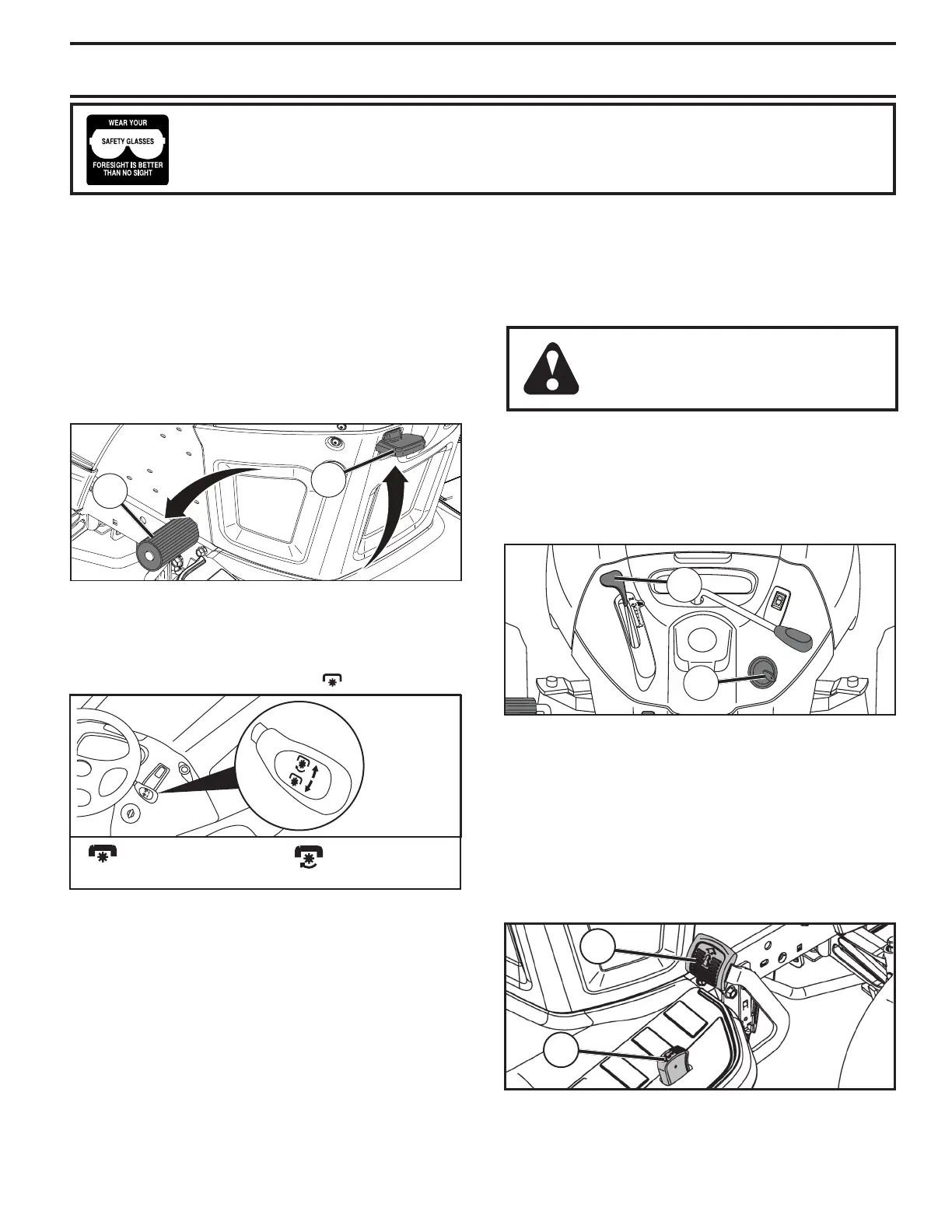 in severe eye dam age. Always wear safety glass es or eye shields while operating your tractor or