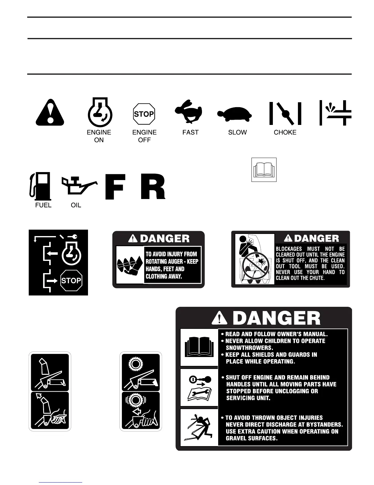 These symbols may appear on your snow thrower or in literature supplied with the product. Learn and understand