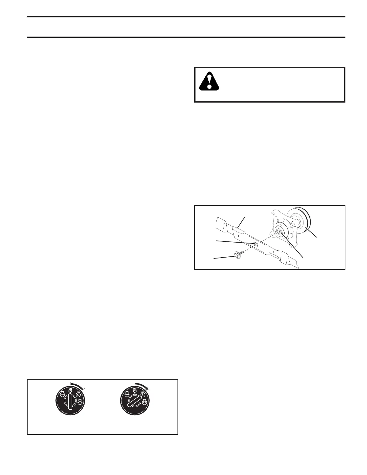 • Install and tighten blade bolt securely (45-55 Ft. Lbs./