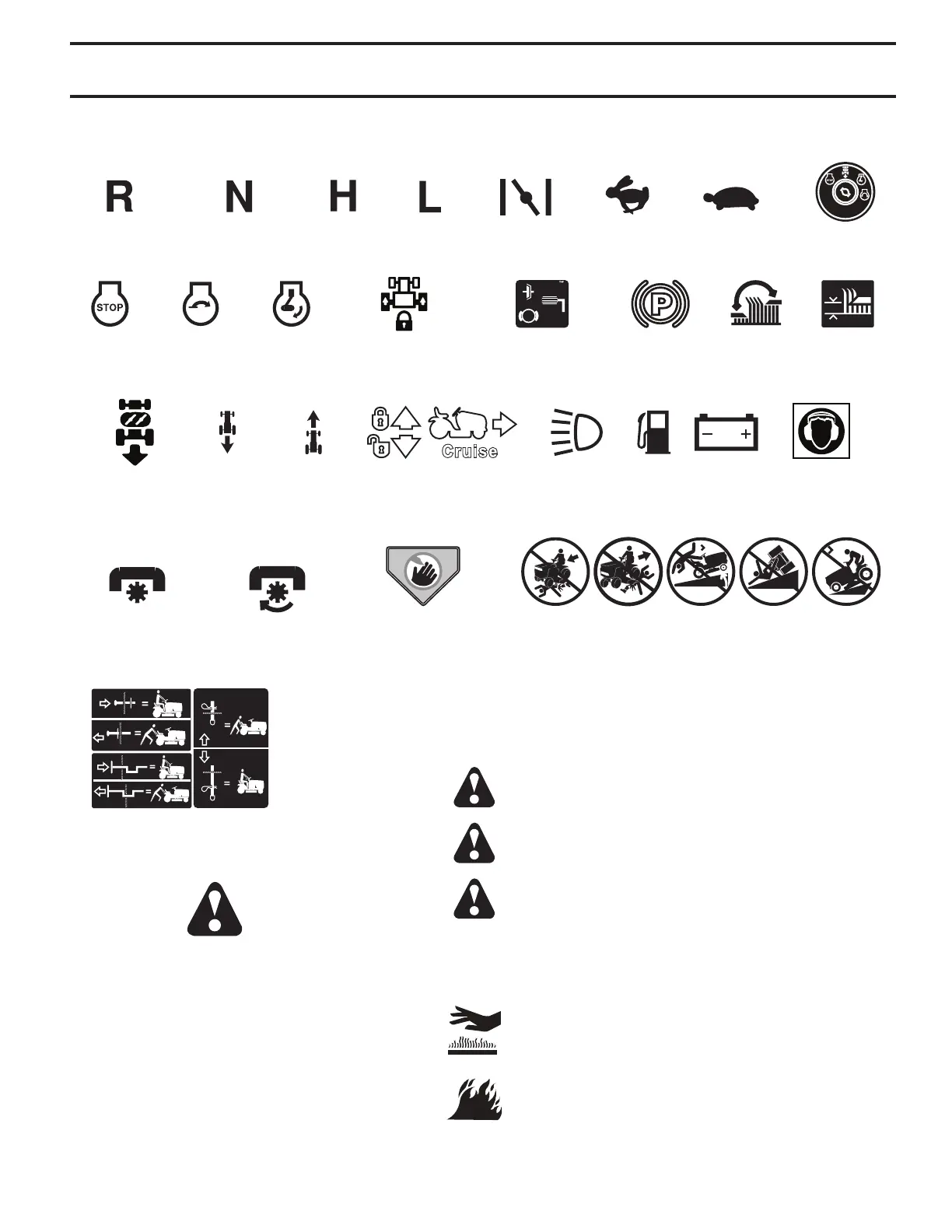 These symbols may appear on your tractor or in literature supplied with the product. Learn and understand their meaning.