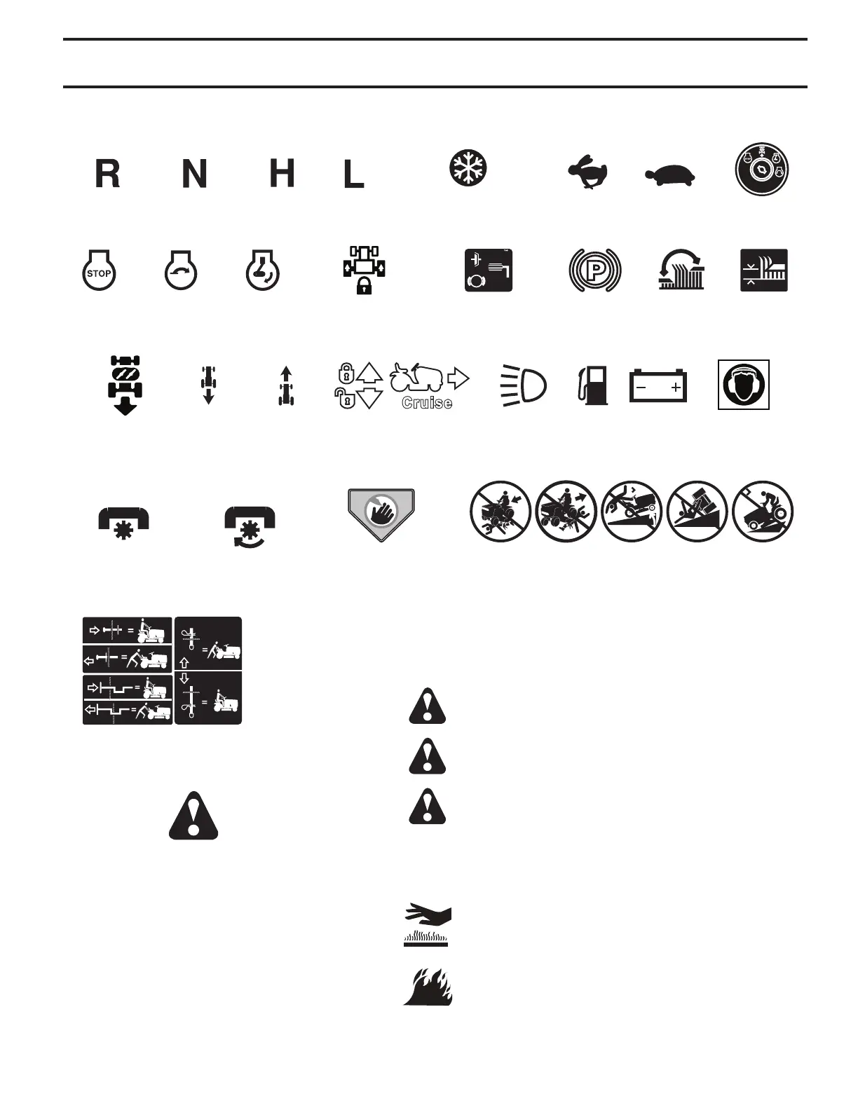 These symbols may appear on your tractor or in literature supplied with the product. Learn and understand their meaning.