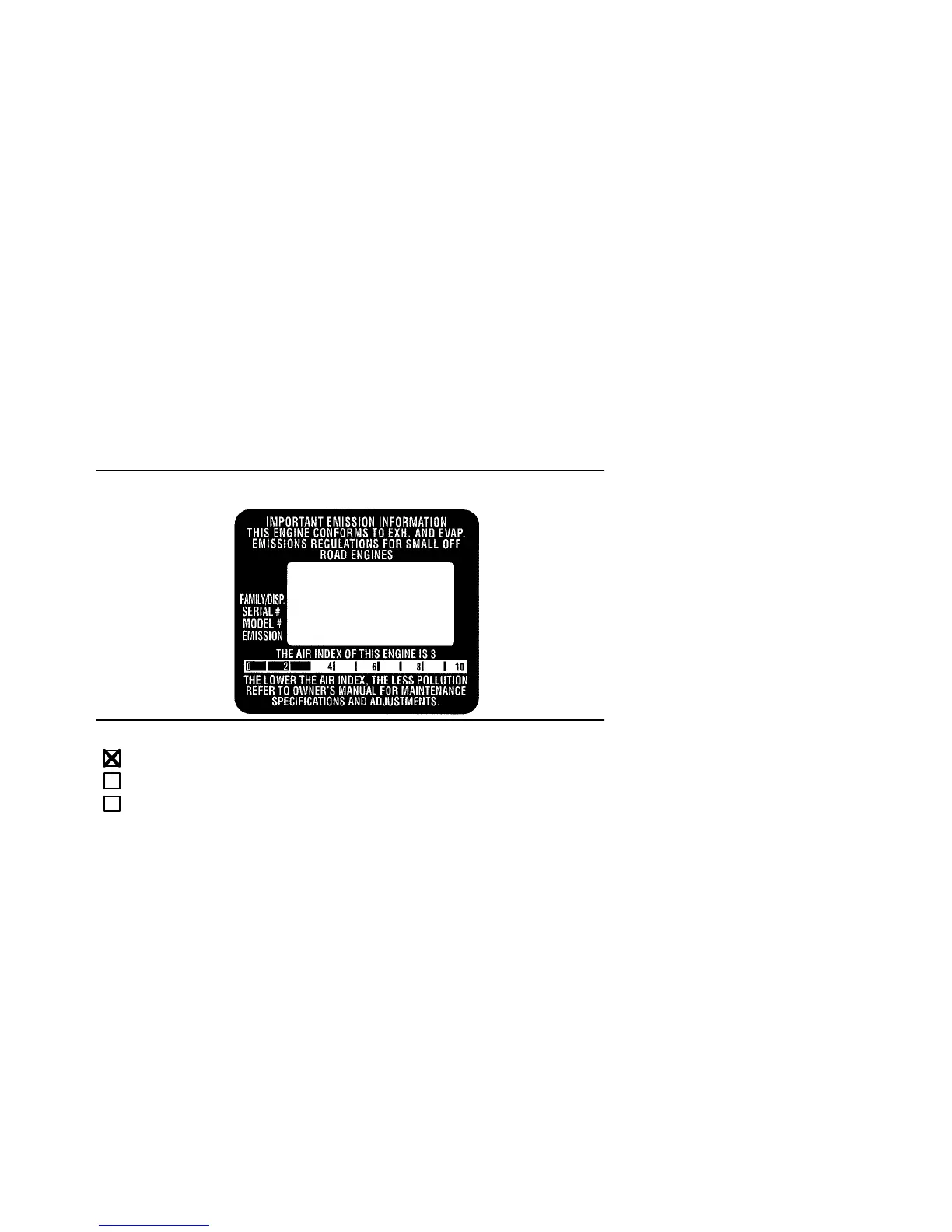 The information on the product label indicates which standard your engine is certified.