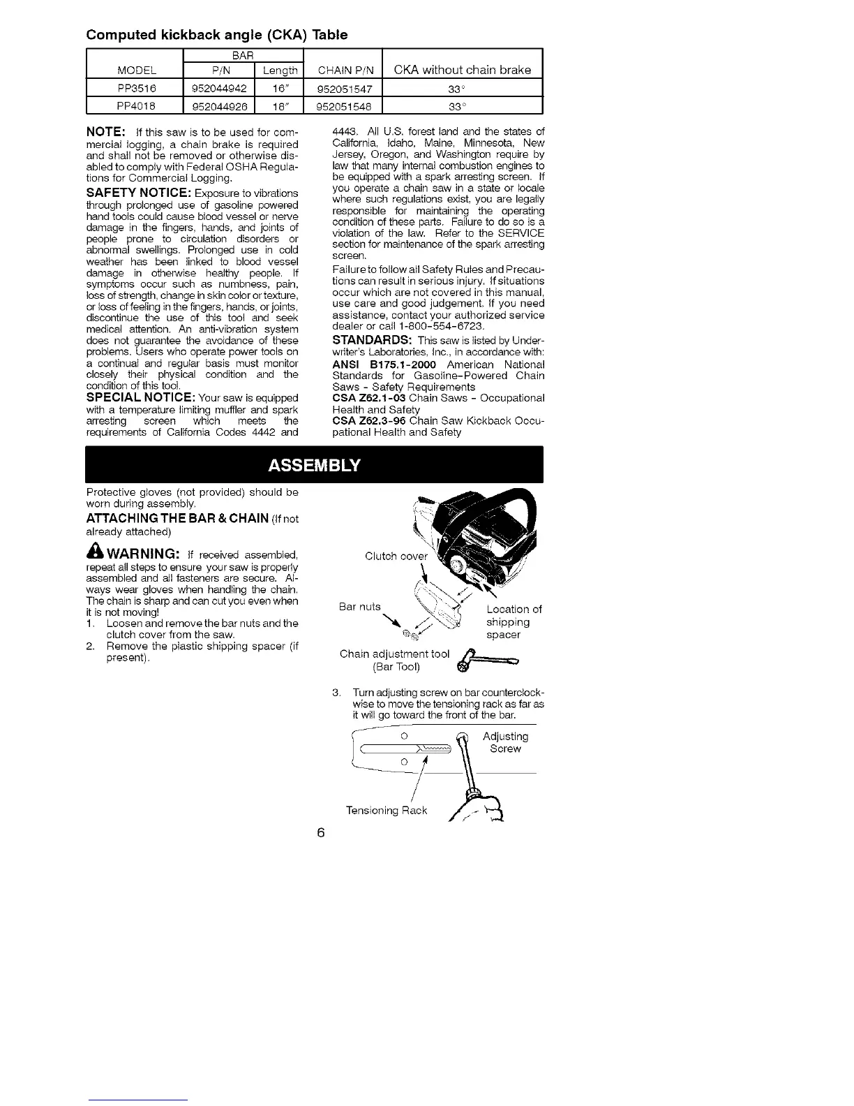 OSA Z62.3-96 Chain Saw Kickback Occu-