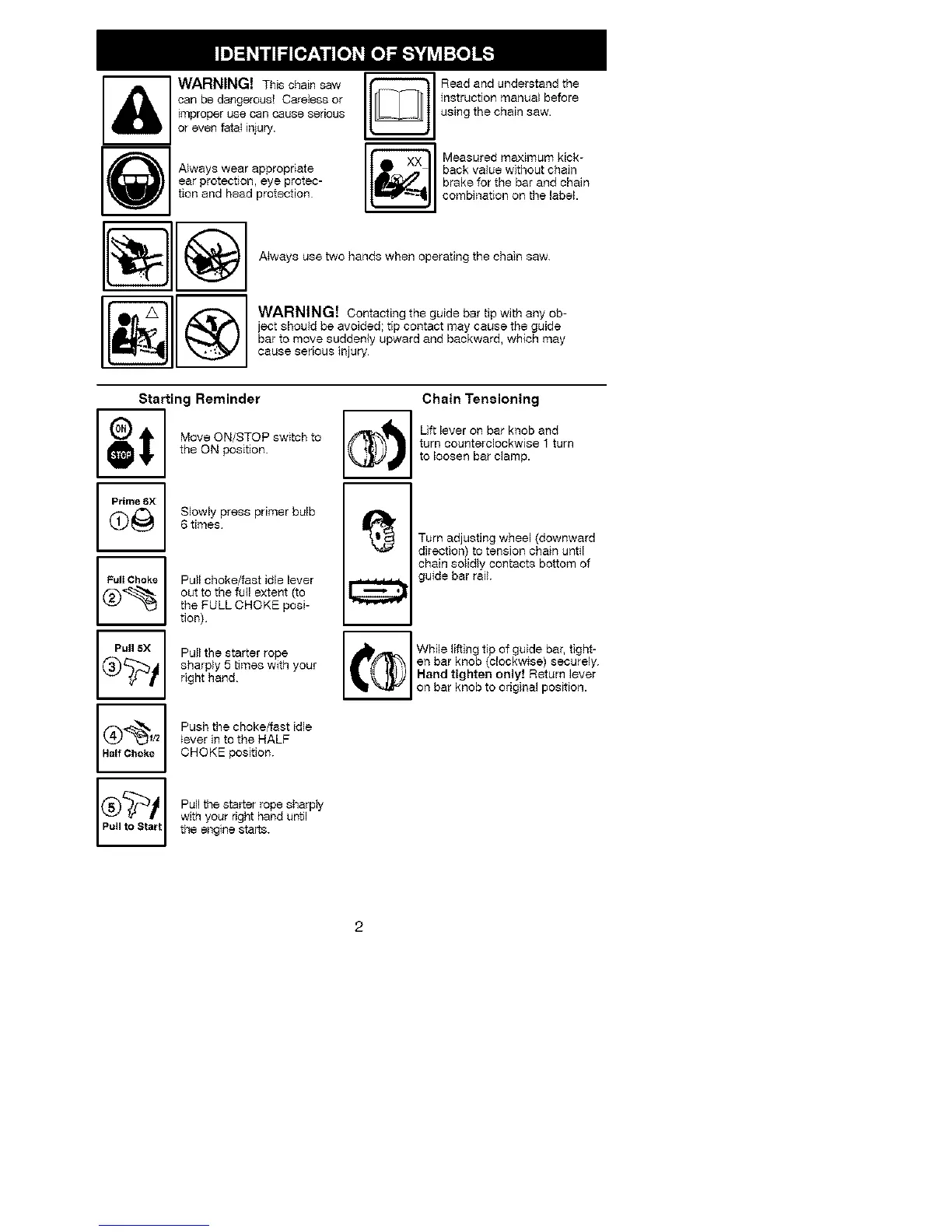 _:: (_ Atways use two hands when operating the chain saw.