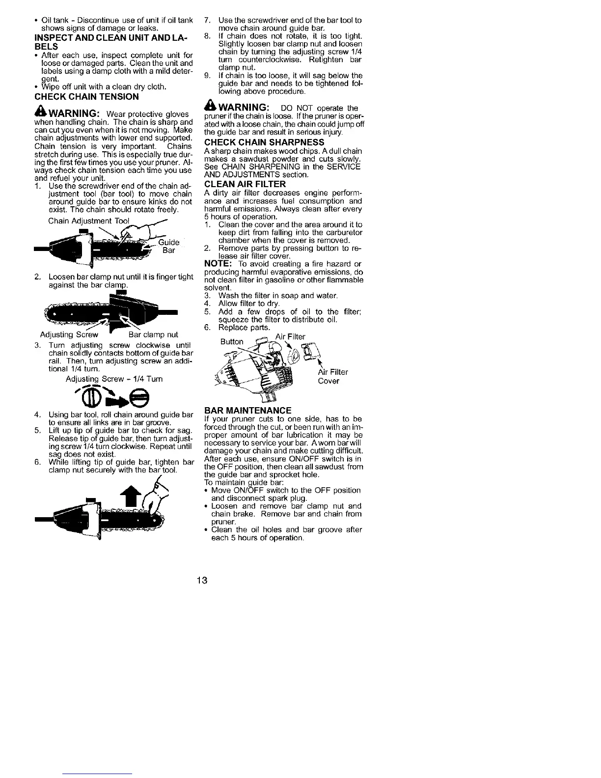 pruner if the chain is loose. Ifthe pruner is oper-