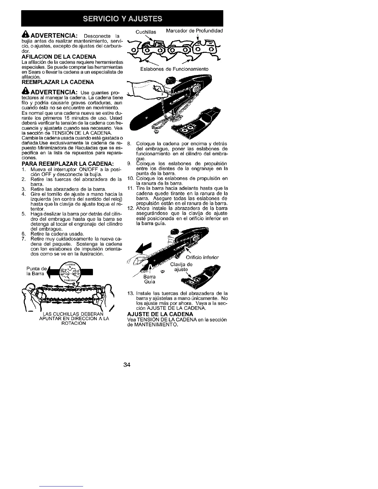 cion AJUSTE DE LA CADENA.