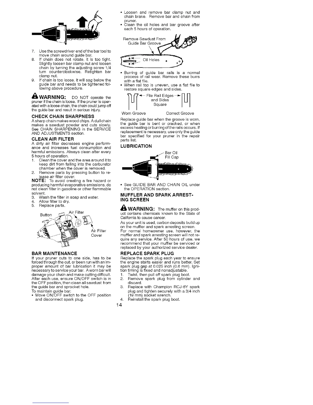pruner if the chain is loose. Ifthe pruner is oper-