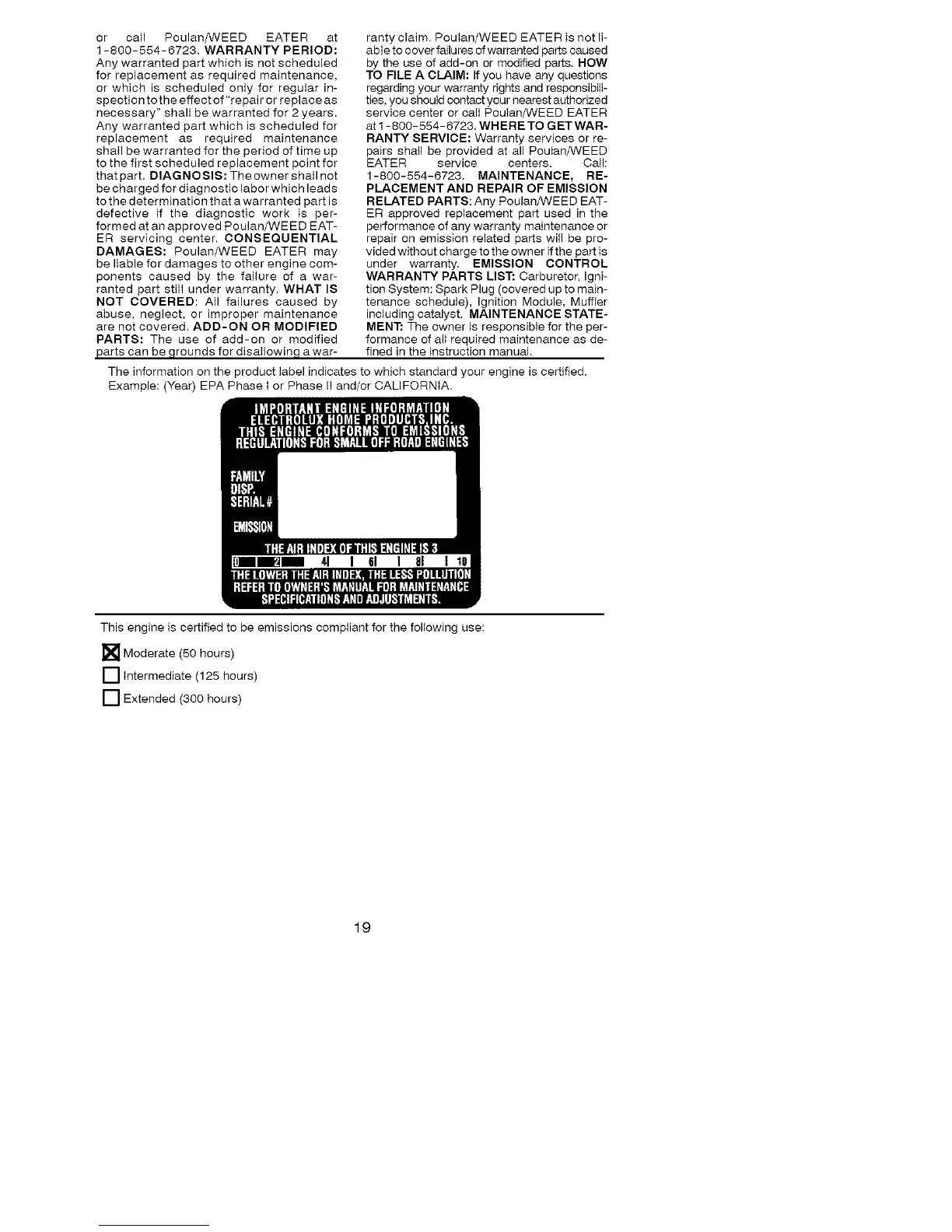 or call Poulan/WEED EATER at