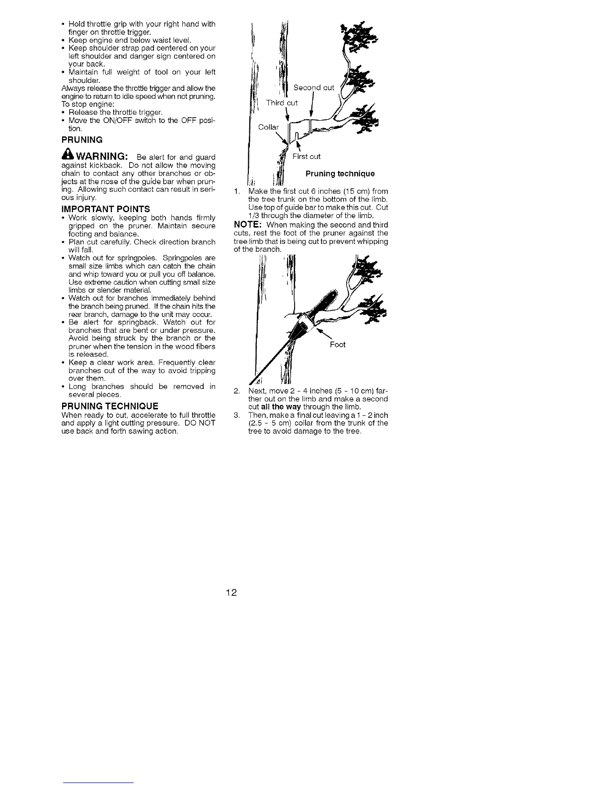 iects at the nose of the guide bar when prun-