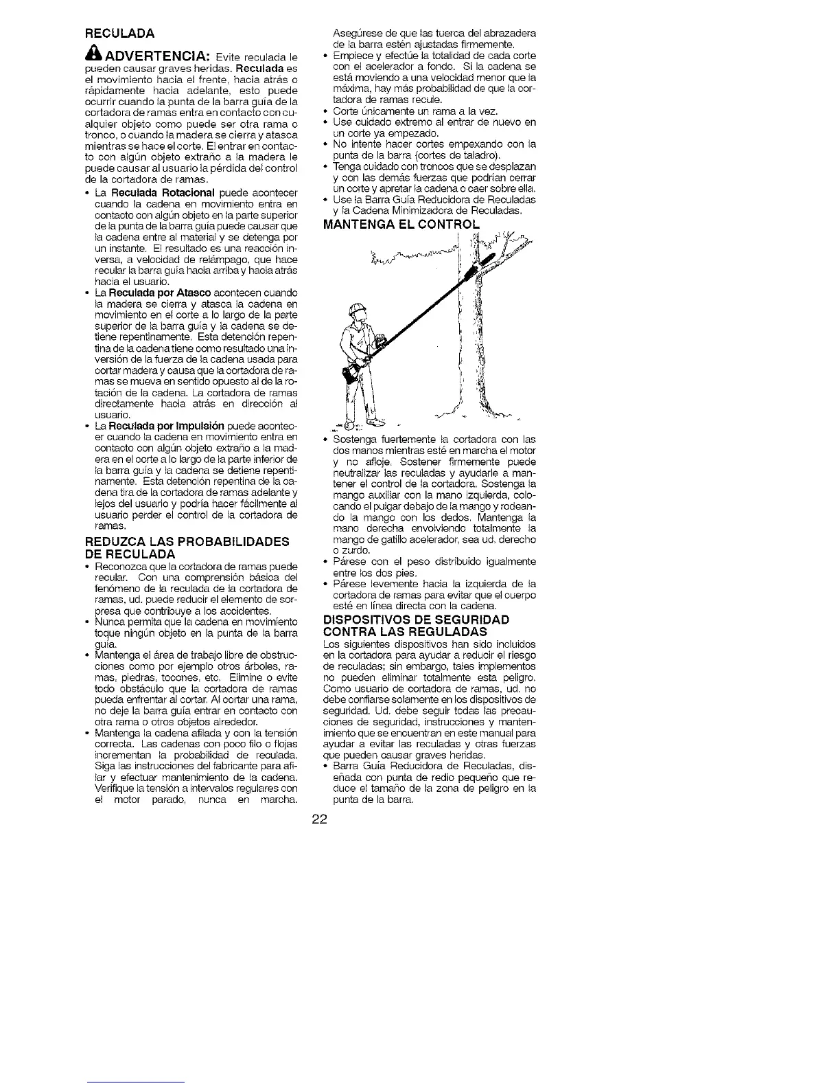 taci6n de ta cadena. La cortadora de ramas