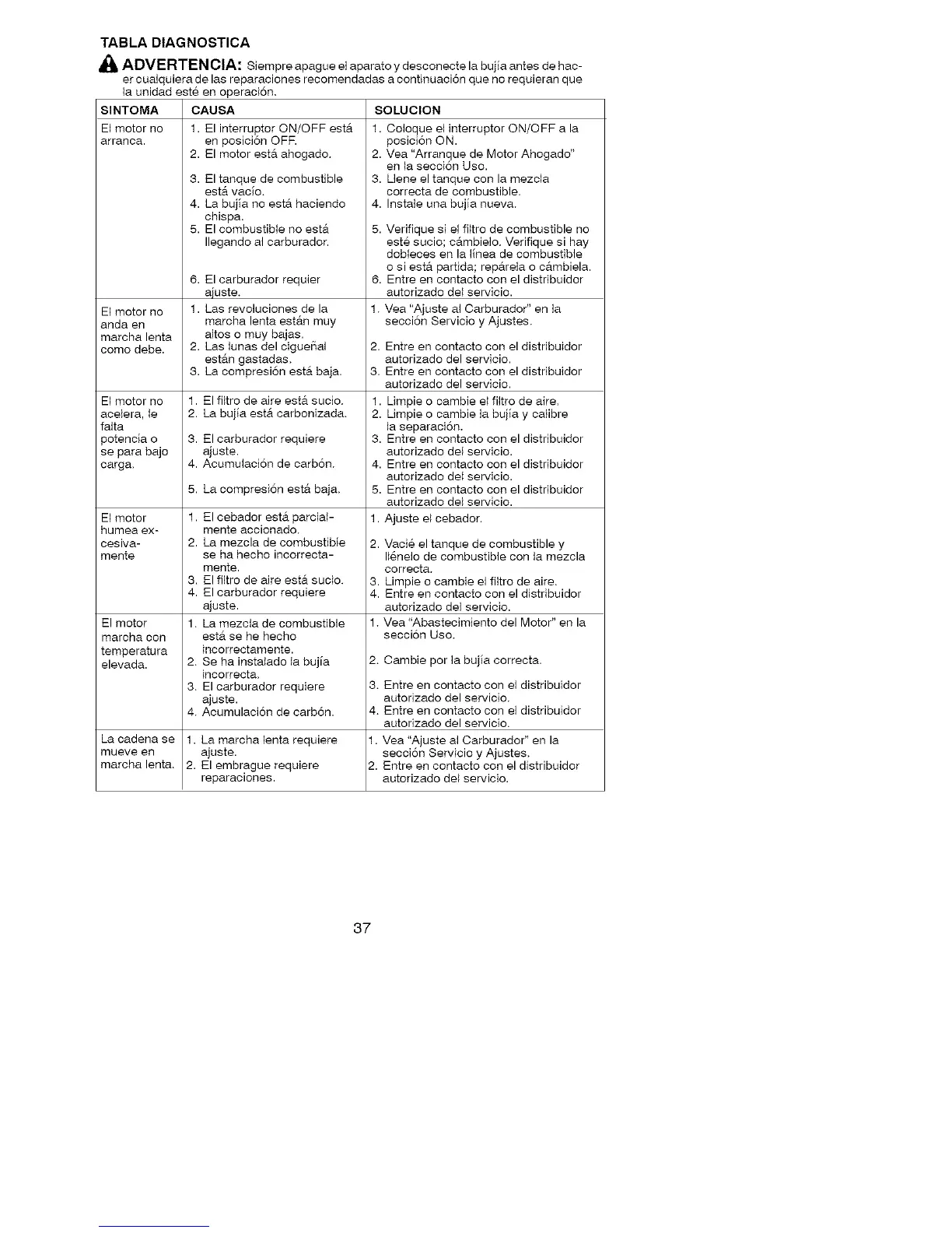 _ ADVERTEN ClA: Siempre apague el aparato y desconecte la bujia antes de hac-