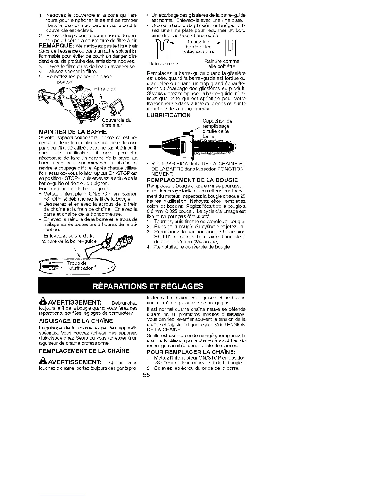 • Voir LUBRIFICATION DE LA CHAINE ET