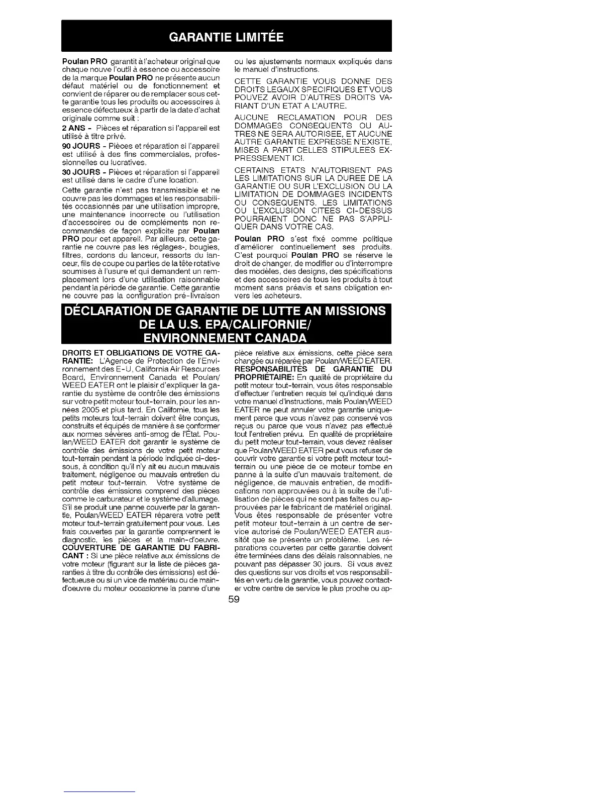 que Poulan/WEED EATER peut vous refuser de