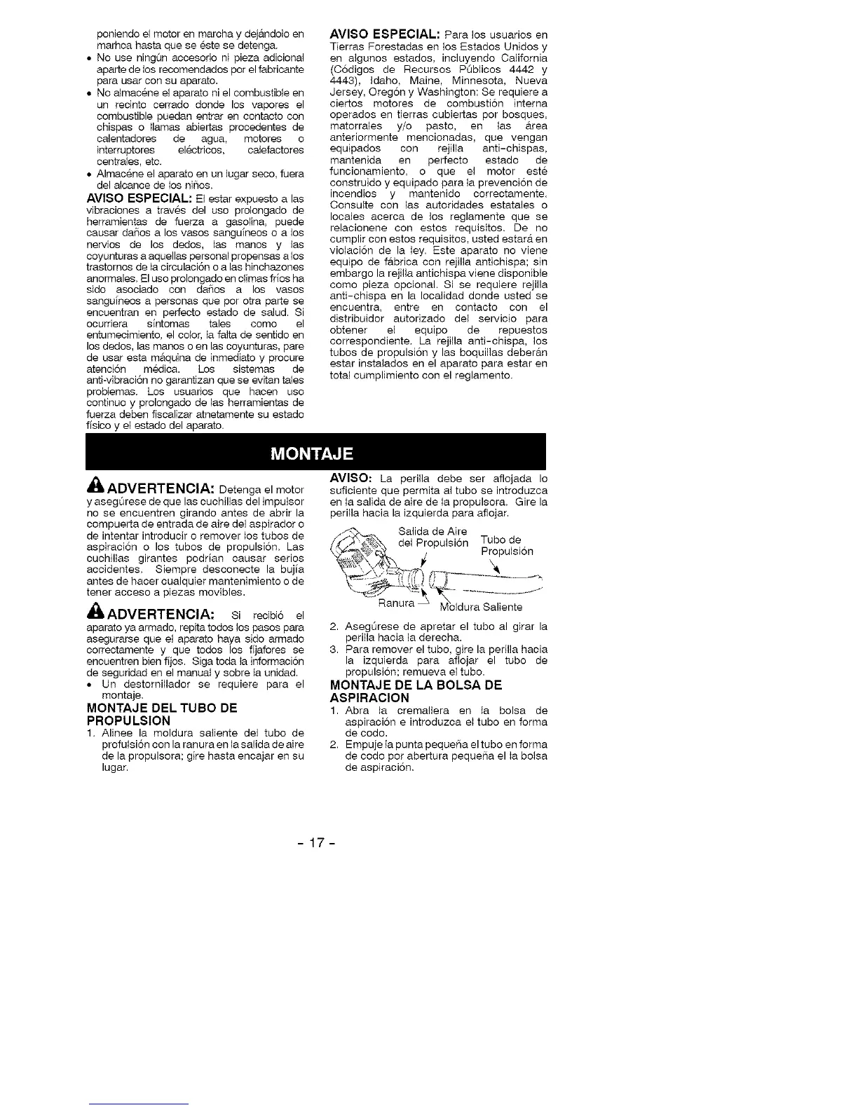 aspiraci6n o los tubos de propulsion. Las