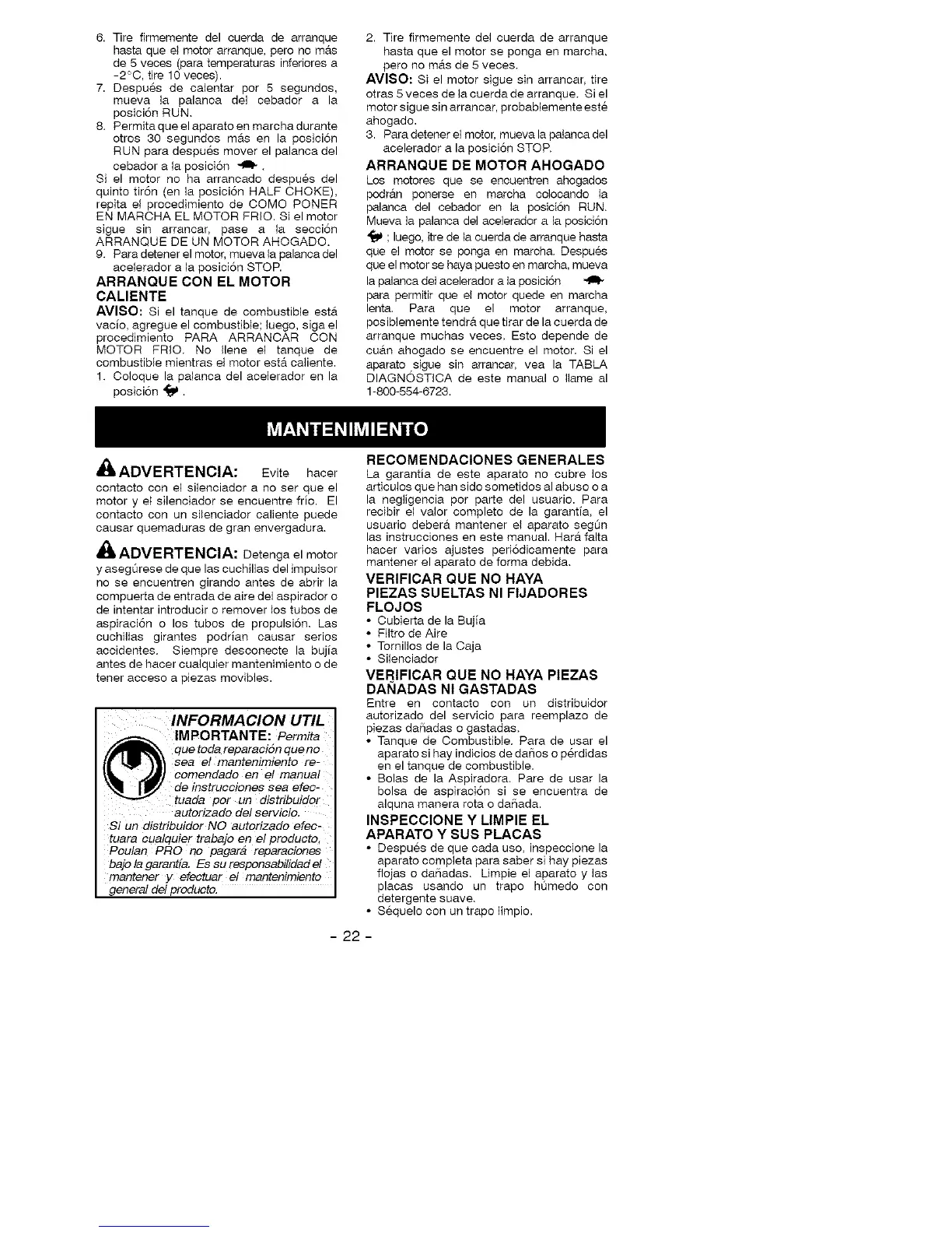 otras 5 veces de ]a cuerda de arranque. Si el