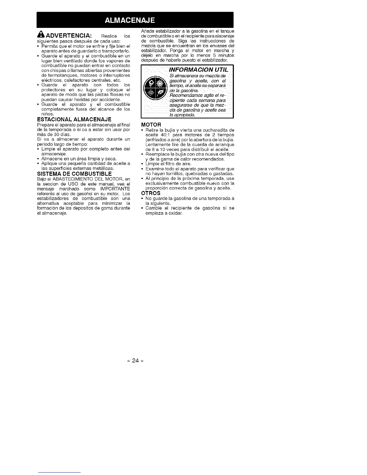 • No guarde la gasolina de uea temporada a
