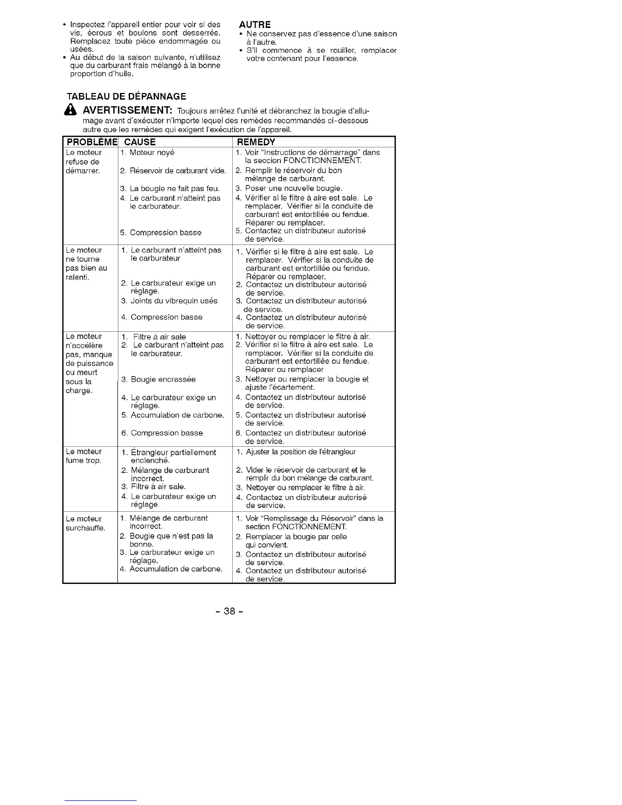 _, AVERTISSEMENT: Toujours arr6tez runite et debranchez la bougie d'allu-