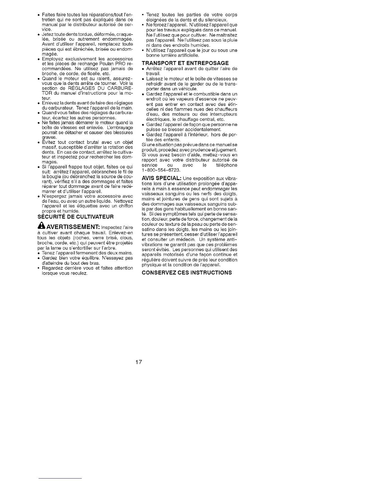 dents. En cas de contact, arr6tez le cultiva-