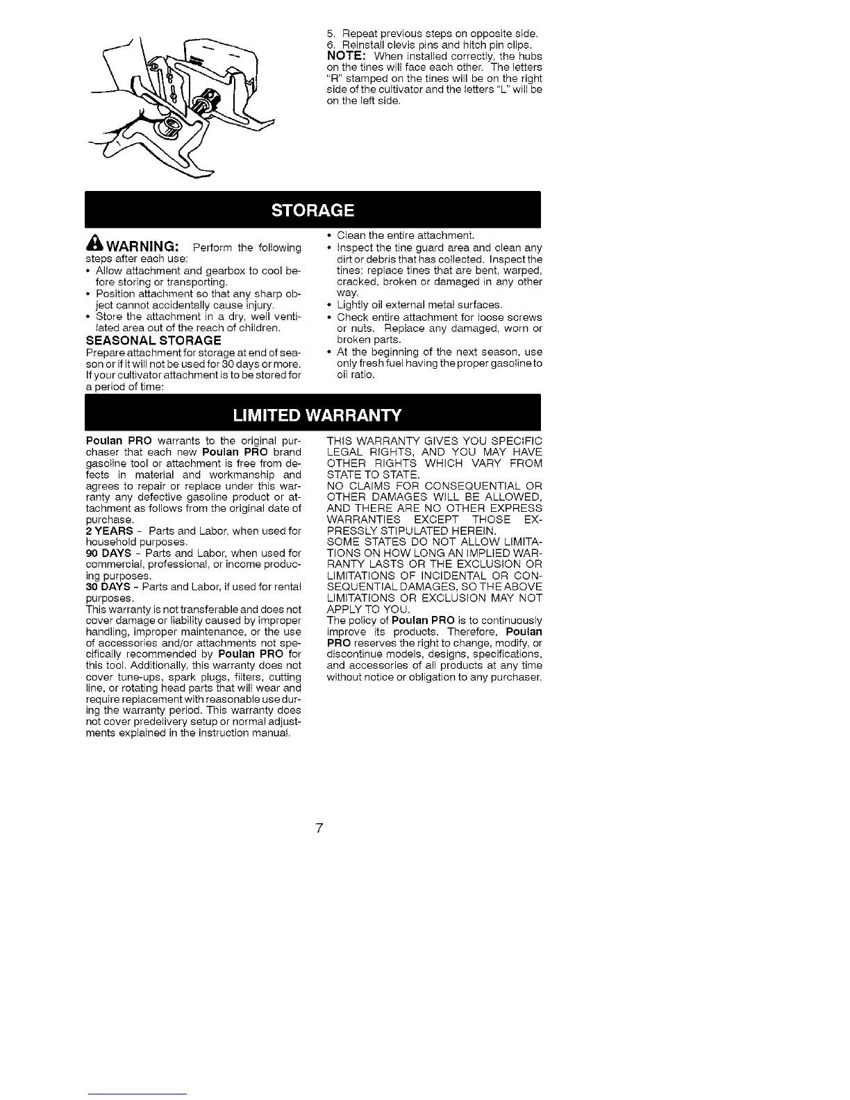 If your cultivator attachment is to be stored for