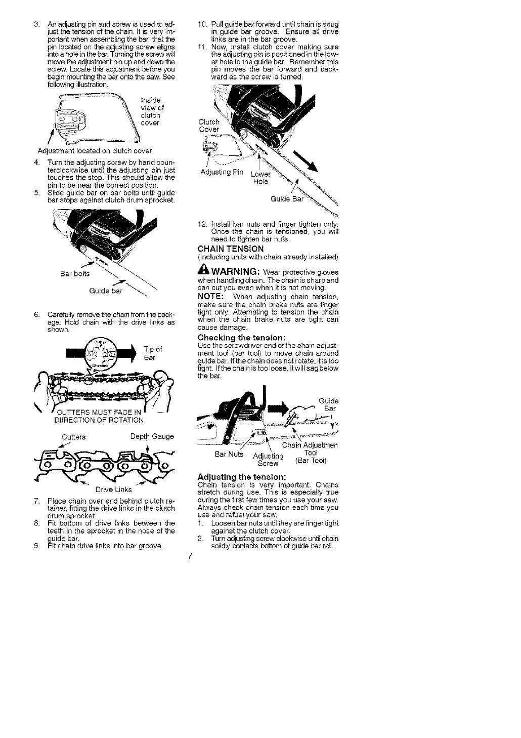 10 Pull guide bar forward until chain is snug