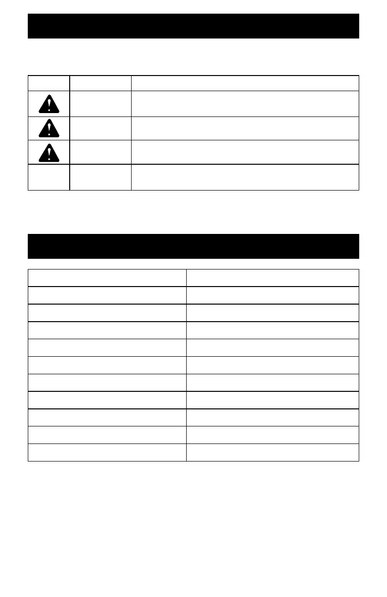 The following signal words and meanings are intended to explain the levels of risk associated