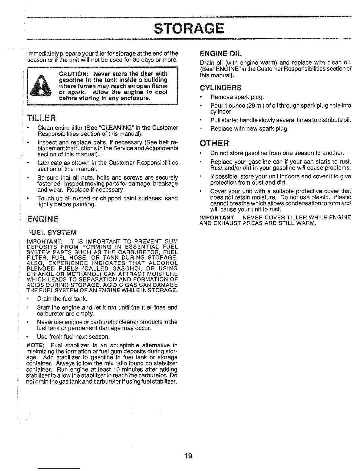 Poulan Pro PPRT5C - Tiller Storage Procedures