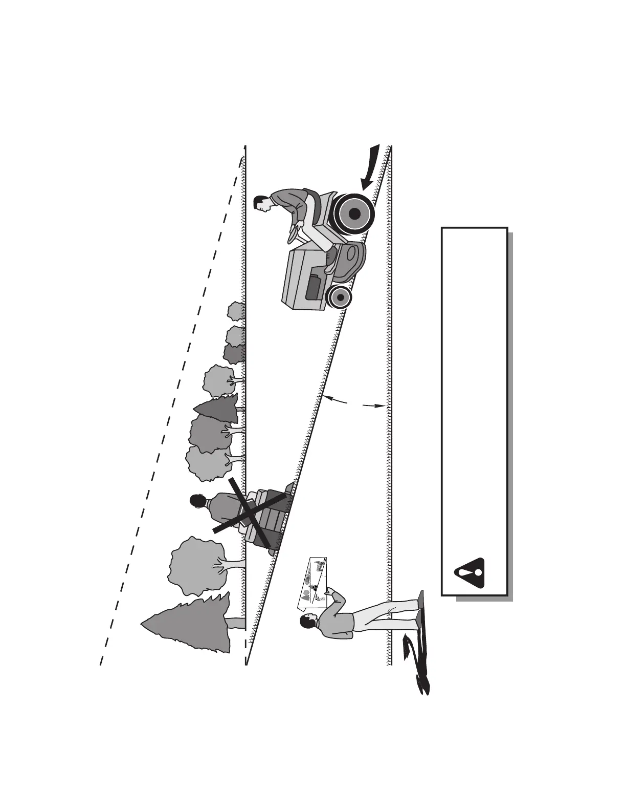y abajo de las pendientes, nunca transversalmente con respecto a las