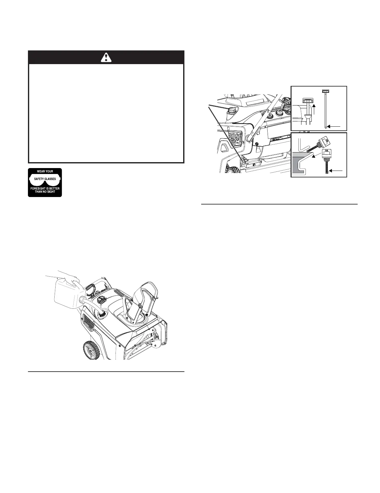 • Do not tip the snowthrower with fuel in the fuel tank.