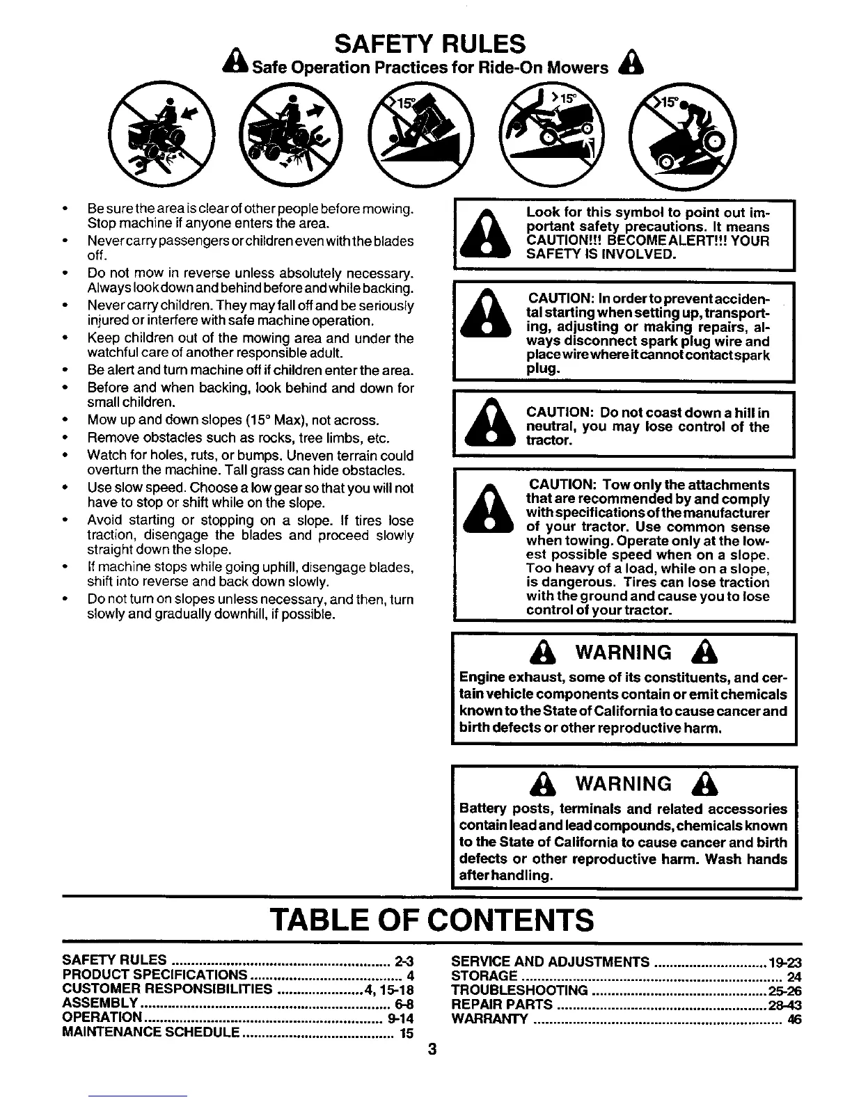 & Safe Operation Practices for Ride-On Mowers &