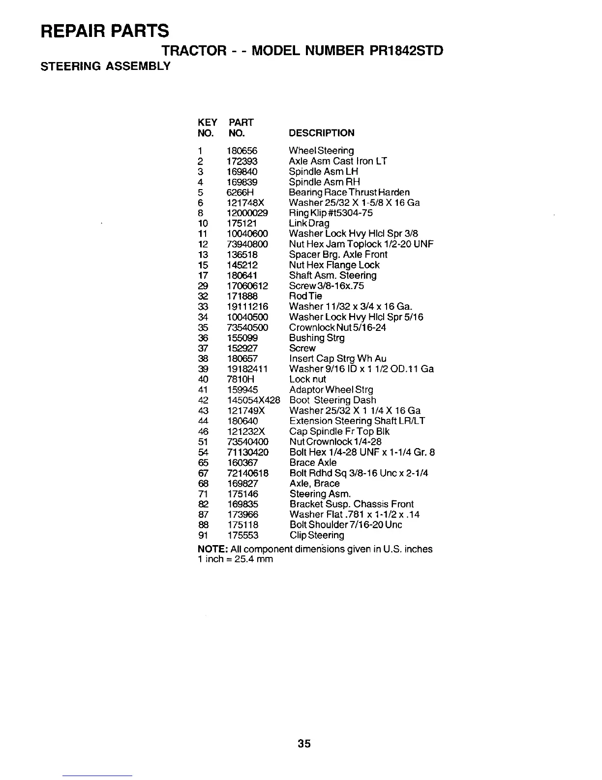 TRACTOR - - MODEL NUMBER PR1842STD