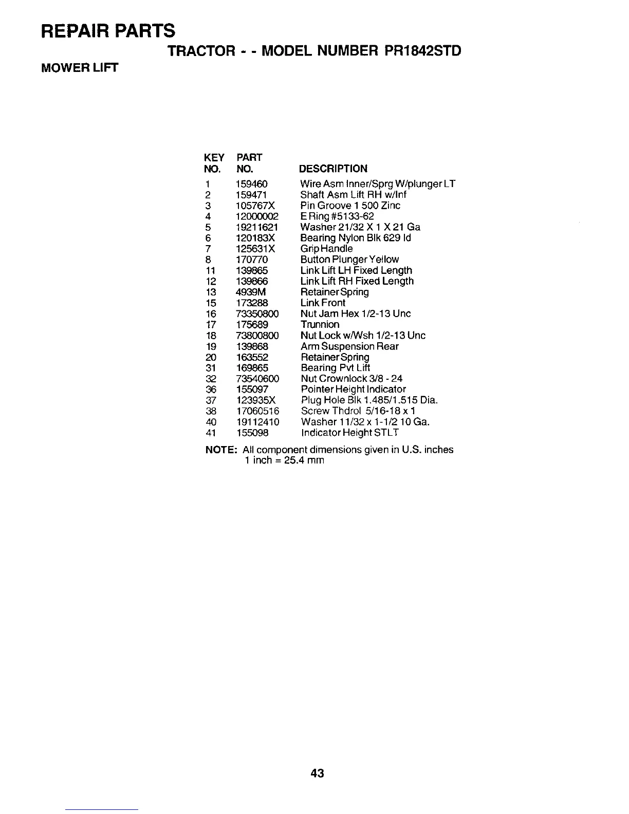 TRACTOR - - MODEL NUMBER PR1842STD