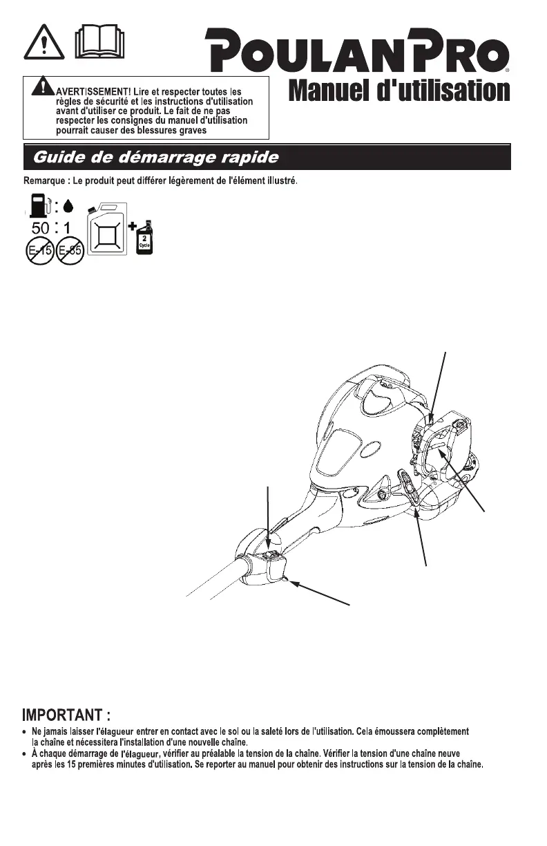 MISE EN GARDE : Ne pas utiliser d'autres carburants, notamment les mélanges