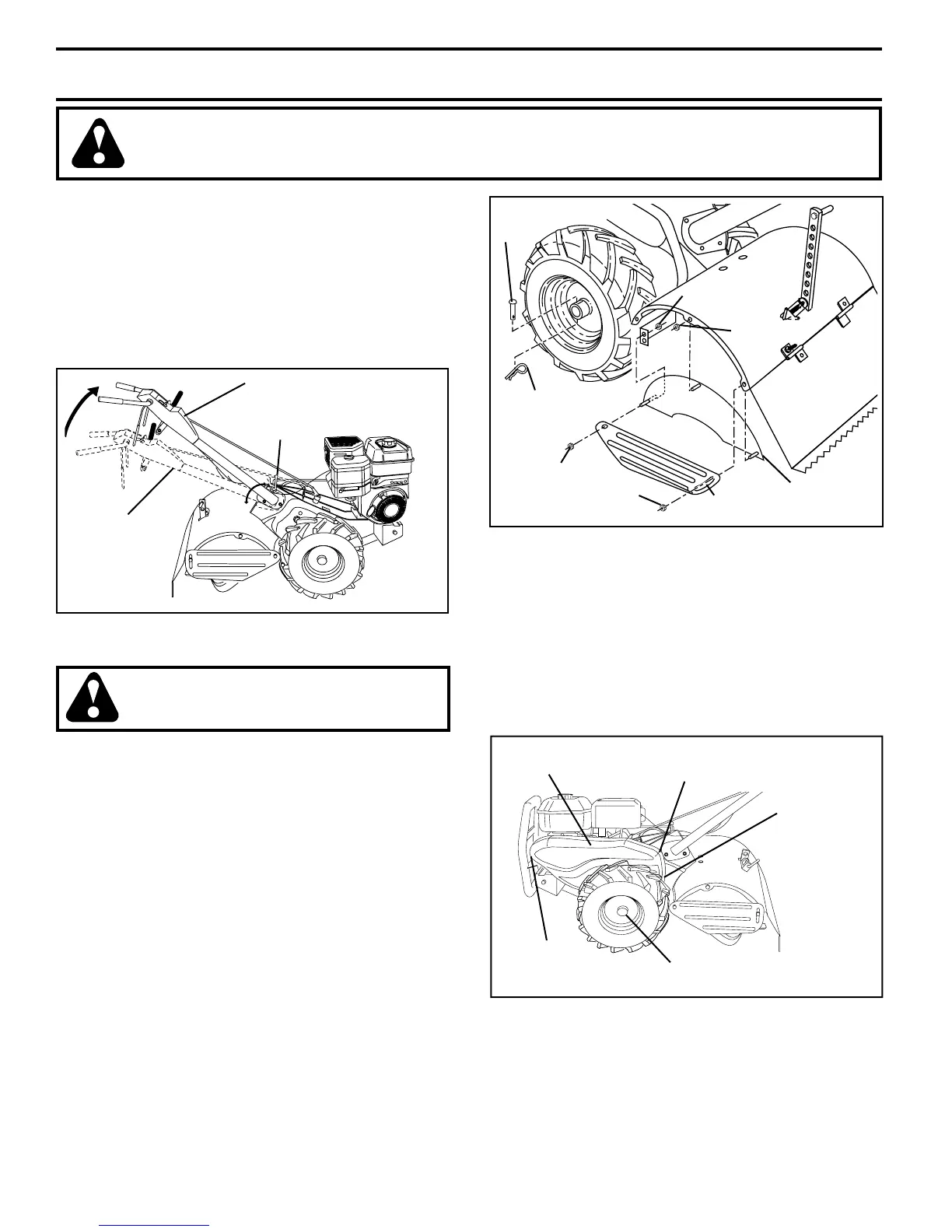 • Place blocks under trans mis sion to keep tiller from