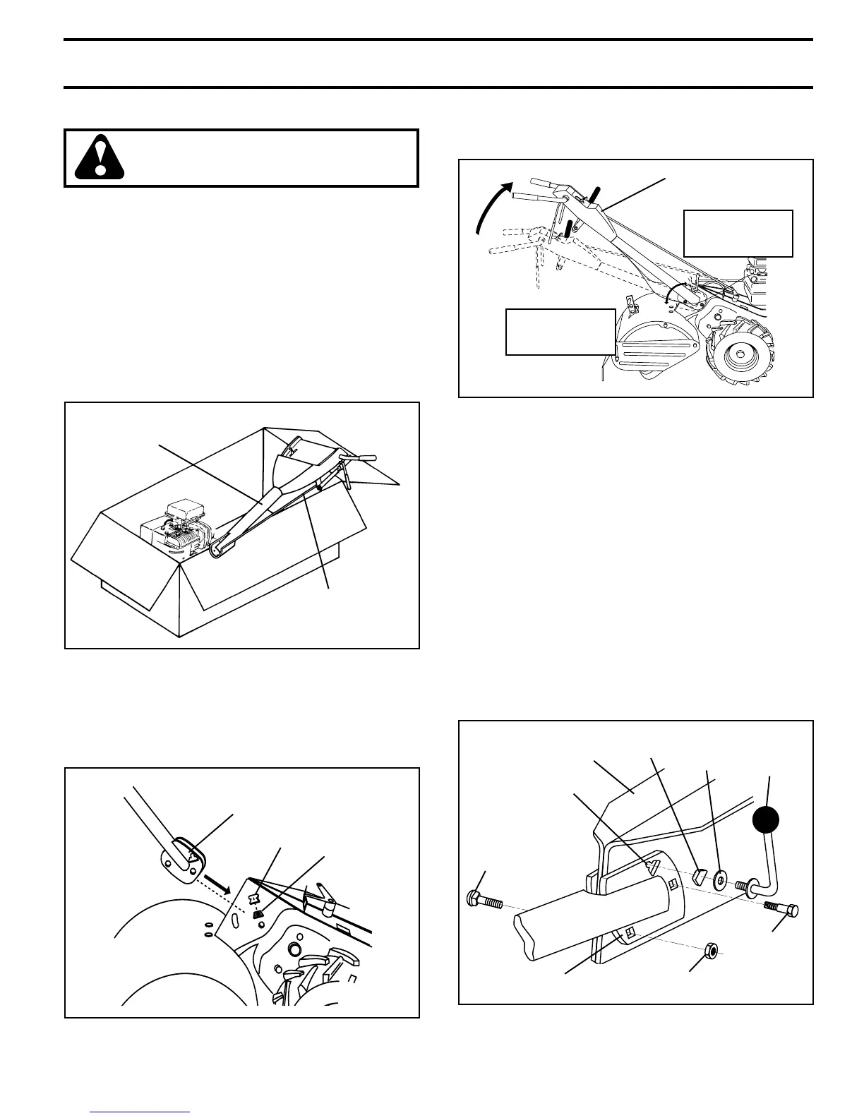 • Rotate handle assembly down. Insert rear carriage bolt