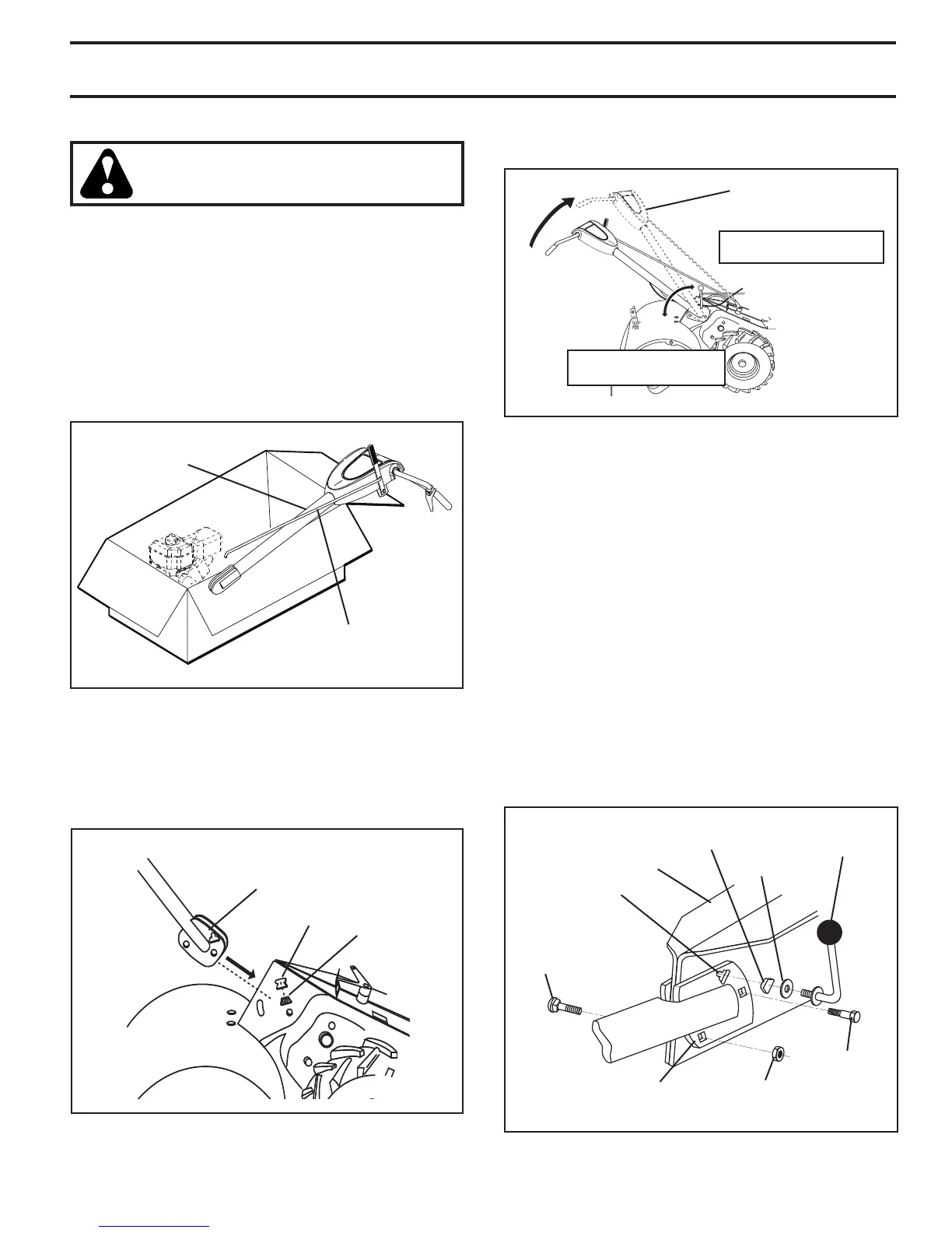 • Rotate handle assembly down. Insert rear carriage bolt