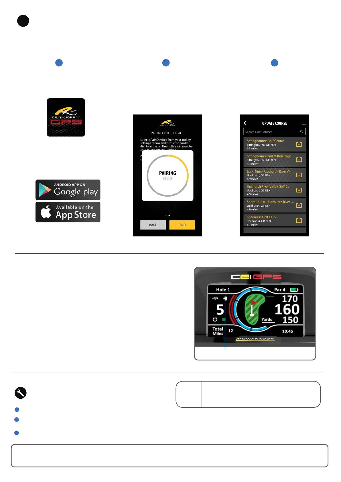 available. The maps can be individually updated via Bluetooth using the PowaKaddy App, available to download from the