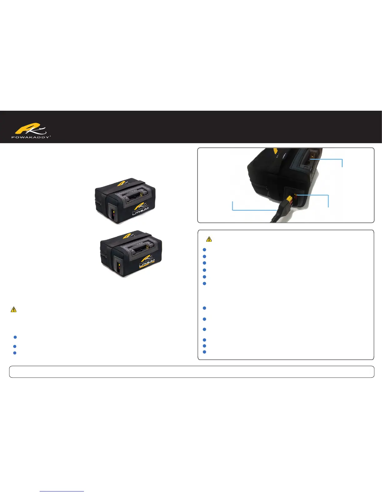 WARNING: Only use a compatible PowaKaddy Universal Charger with 3 pin output (yellow, red and black)