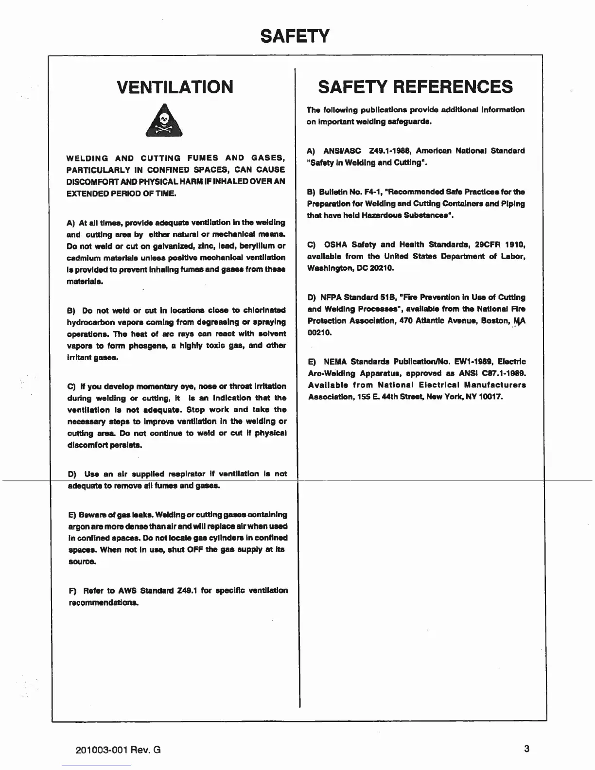PowCon 200SM - VENTILATION REQUIREMENTS; SAFETY REFERENCES LIST