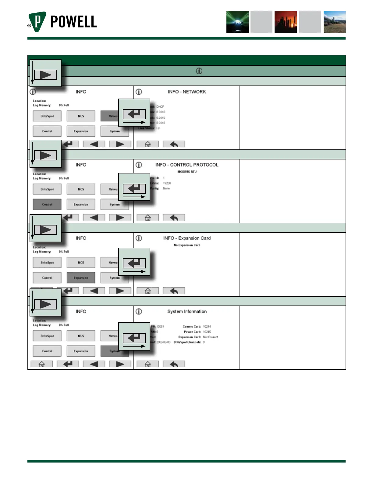 Information Screens - Press From Main Screen