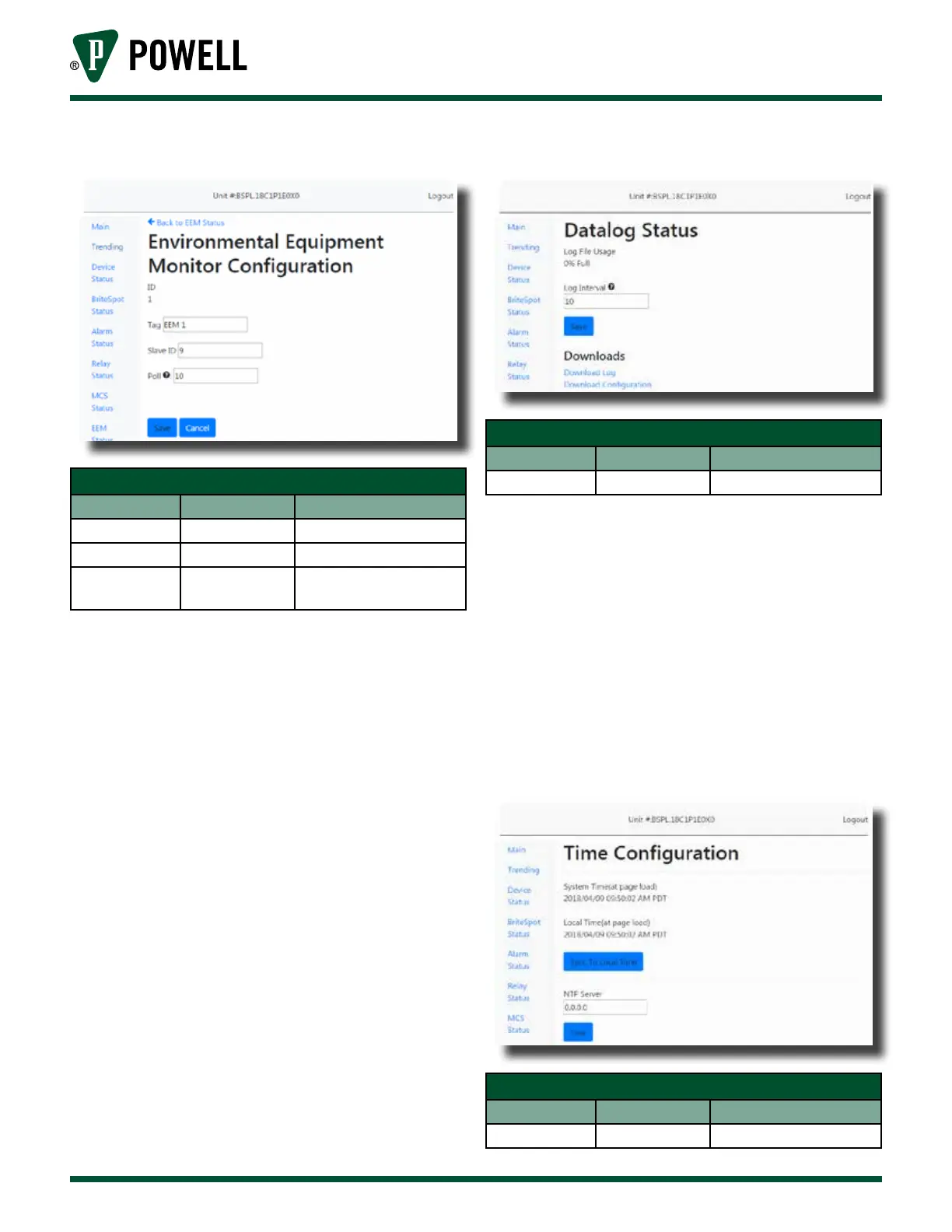 Table P EcoVisor™ Configuration Web Page